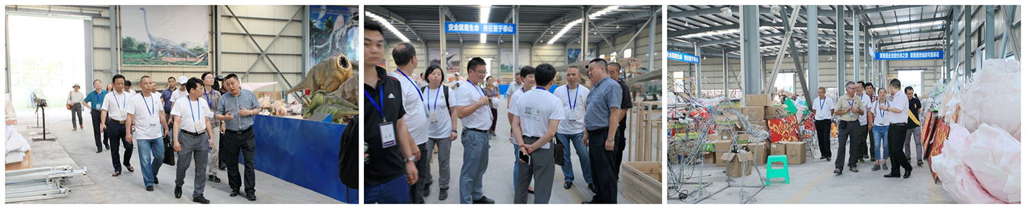 在自貢燈貿集團執(zhí)行總裁陶建軍,集團下屬國韻燈貿有限公司總經(jīng)理李斌的陪同下,各位領導參觀了燈貿集團的各生產(chǎn)現(xiàn)場,認真聽取公司情況介紹,對我公司的研發(fā)創(chuàng)新能力、產(chǎn)品升級能力、市場開發(fā)能力等給予了充分的肯定和高度的評價。兩位教授對公司的燈和恐龍十分感興趣,對彩燈的“結、扎、編”工藝贊不絕口。