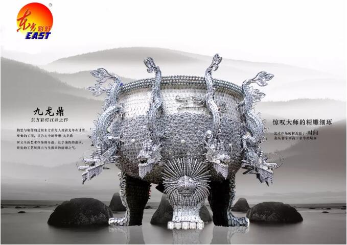 東方彩燈人構(gòu)思與制作的過程用著光年在計算,漫長的工期,只為心中的夢想——九龍鼎,樹立全新藝術(shù)作品的奇跡,近乎偏執(zhí)的追求,繁復的工藝展現(xiàn)出與生俱來的磅礴之氣。