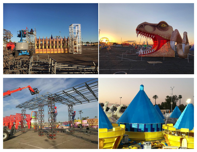 藍(lán)天白云、晴空朗朗,技藝高超的工匠師傅正將燈組配件完美的安裝到預(yù)定位置。每個人都在盡最大努力,希望用兩周后開幕的“世界之光-2018菲尼克斯彩燈嘉年華”,為菲尼克斯及世界人民送上來自東方的圣誕祝福。
