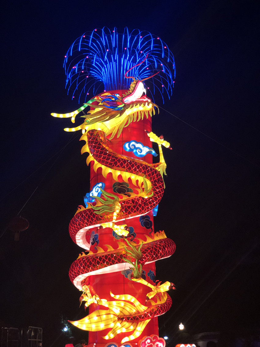 16米高的《龍柱禮花》,用中國傳統(tǒng)瑞獸龍為設(shè)計(jì)主題,繞柱而上,造型獨(dú)特,寓意鵬程萬里。