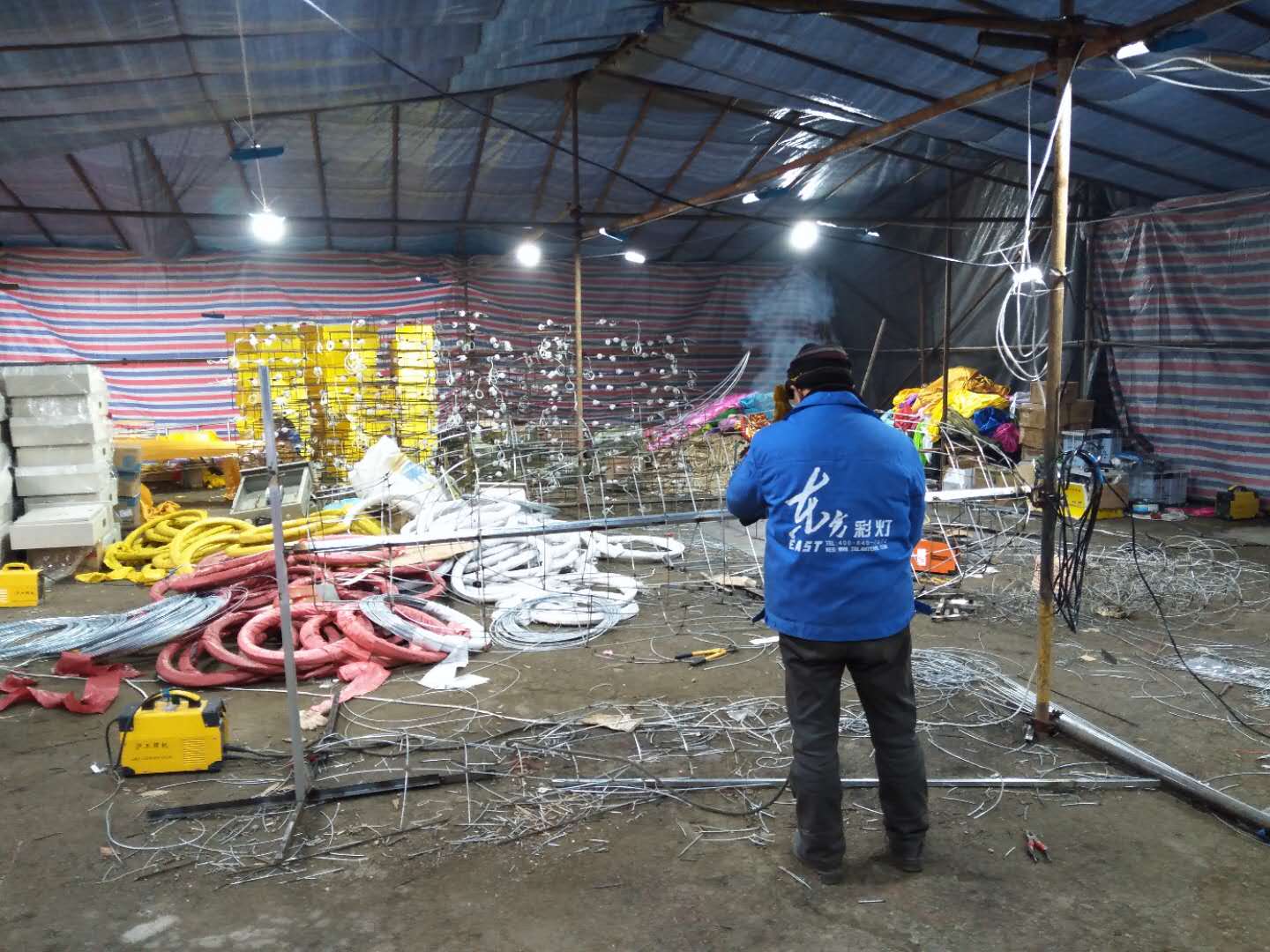 目前,東方彩燈身懷技藝的制燈匠人正緊鑼密鼓的制作中。那些看上去冰冷粗獷的鐵絲、綢緞,在他們“馴化”下變得溫順隨和,一組組或生動(dòng)、或委婉、或雄渾的燈組栩栩如生。本屆“太陽(yáng)節(jié)”較大的突破是所有燈組均采用節(jié)能環(huán)保燈具,較之往年減少三分之二的用電負(fù)荷,打造炫彩奪目的燈光效果的同時(shí),保護(hù)了環(huán)境和游客。在制作方面,部分主要大型燈組均采用加密色丁布裝飾,傳統(tǒng)燈組結(jié)合現(xiàn)代科技,民俗風(fēng)情融合時(shí)尚藝術(shù),集現(xiàn)代感、藝術(shù)感為一體,凸顯顏色豐富的層次感。