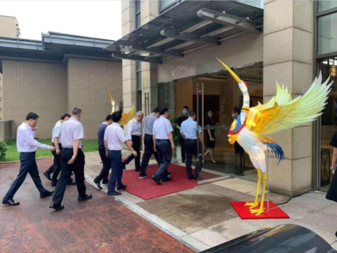 為彰顯自貢彩燈文化名片,市政府有關(guān)部門精選自貢燈貿(mào)集團股份有限公司自有品牌“東方彩燈”出品的兩組具有傳統(tǒng)彩燈藝術(shù)特色燈組—“瑞鶴”、“諦聽”呈放接待現(xiàn)場。