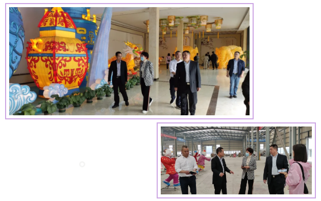 燈貿(mào)集團(tuán)董事長劉婭、執(zhí)行總裁陶建軍陪同調(diào)研團(tuán)一行參觀了東方彩燈(出口)基地,觀摩彩燈制作過程,全面了解了彩燈工藝流程。