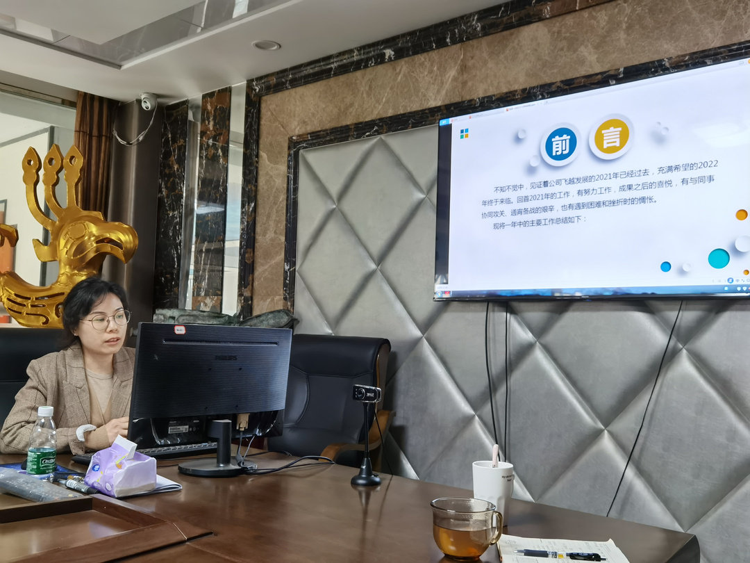 集團(tuán)公司董事長劉婭作了總結(jié)發(fā)言。她對全體同仁在過去一年付出的努力、辛勞和智慧,表示感謝,對集團(tuán)公司各分公司、各部門2021年在經(jīng)營班子帶領(lǐng)下取得的成績給予充分肯定。她指出,2022年公司堅(jiān)持以扁平化管理,努力拓展市場,每位員工都要保持“狼性思維”,才能在激烈的行業(yè)競爭中保持前進(jìn)步伐。