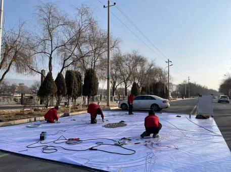 如火如荼的彩燈制作現(xiàn)場(chǎng),放樣、焊接、裱糊......正緊張有序的進(jìn)行中。