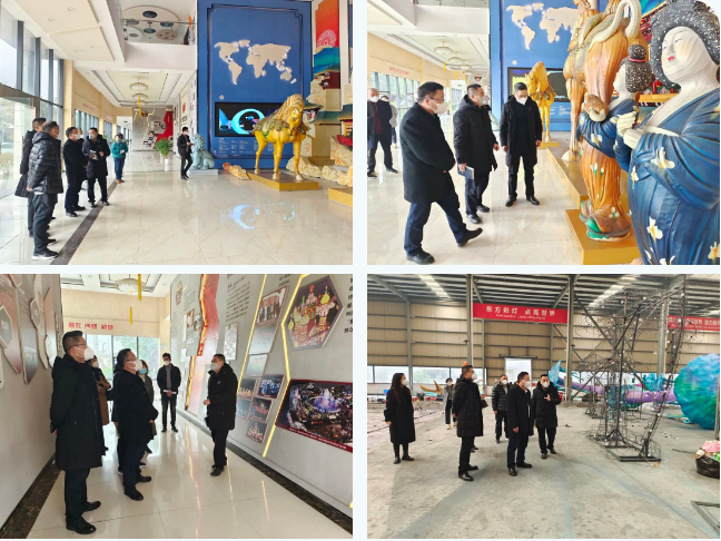 立法調(diào)研組一行人在集團(tuán)執(zhí)行總裁陶建軍陪同下首先參觀了集團(tuán)公司大廳展陳精品燈組“唐風(fēng)華韻”。隨后來(lái)到東方彩燈出口基地生產(chǎn)車間,第29屆自貢國(guó)際恐龍燈會(huì)燈貿(mào)集團(tuán)承制燈組的制作現(xiàn)場(chǎng),詳細(xì)了解了本屆燈會(huì)燈組制作的相關(guān)情況。